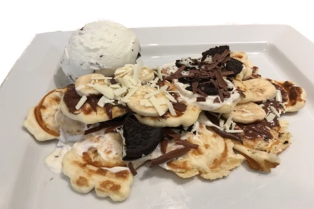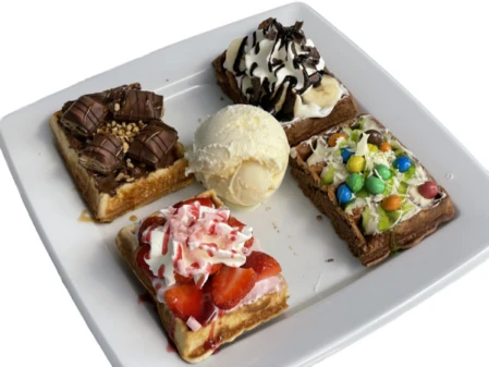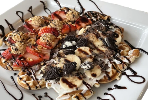 Unsere Süßspeisen servieren wir Ihnen stets frisch und mit allen nur denkbaren Soßen, Früchte, Eis, Frische Sahne, Toppings und sonstigen Leckereien. Lassen Sie sich Ihre Waffel oder Crêpe ganz nach Ihrem Geschmack zusammen stellen!